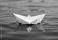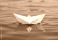 • Small origami paper boat, pristine white, floating on calm water, close-up, paper boat
