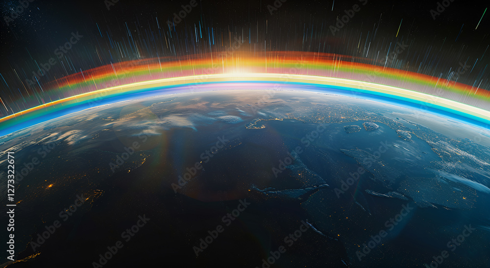 Plakat Kosmos - Wschód słońca nad Ziemią widziany z kosmosu. #1273322671