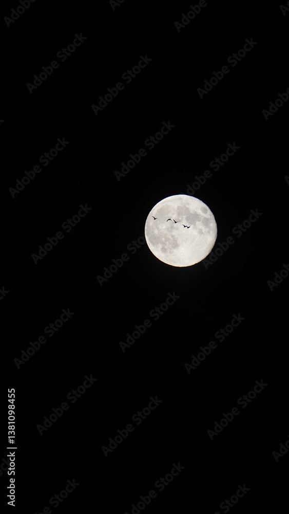 Plakat Kosmos - Ptaki na tle księzyca #1381098455