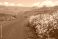 Kosmos - Tar road and cosmos flowers in the foreground. Traditional QwaQwa houses and the Drakensberg... #1769628168