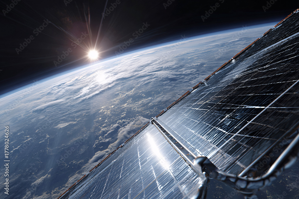 Kosmos - Panel słoneczny w przestrzeni kosmicznej nad Ziemią #1778024626