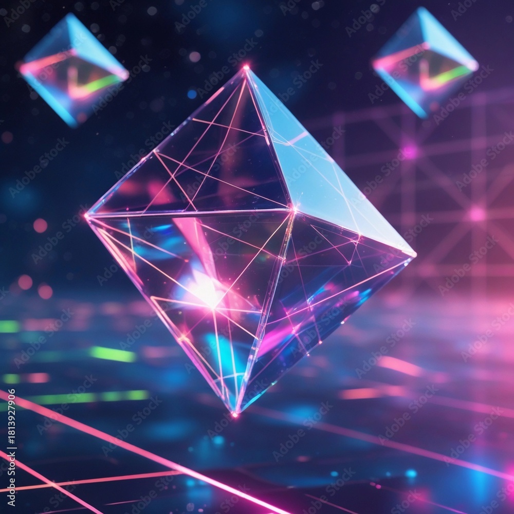 Kosmos - Abstrak kristal modern dengan lampu neon yang cerah #1813927906