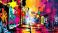 • Vibrant graffiti alleyway with neon lights and reflections
