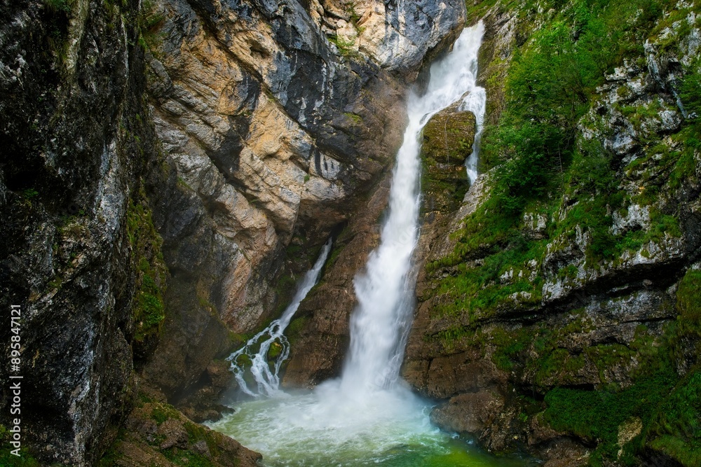 Kamień - piękno wodospadu Savica w jesienny dzień #895847121