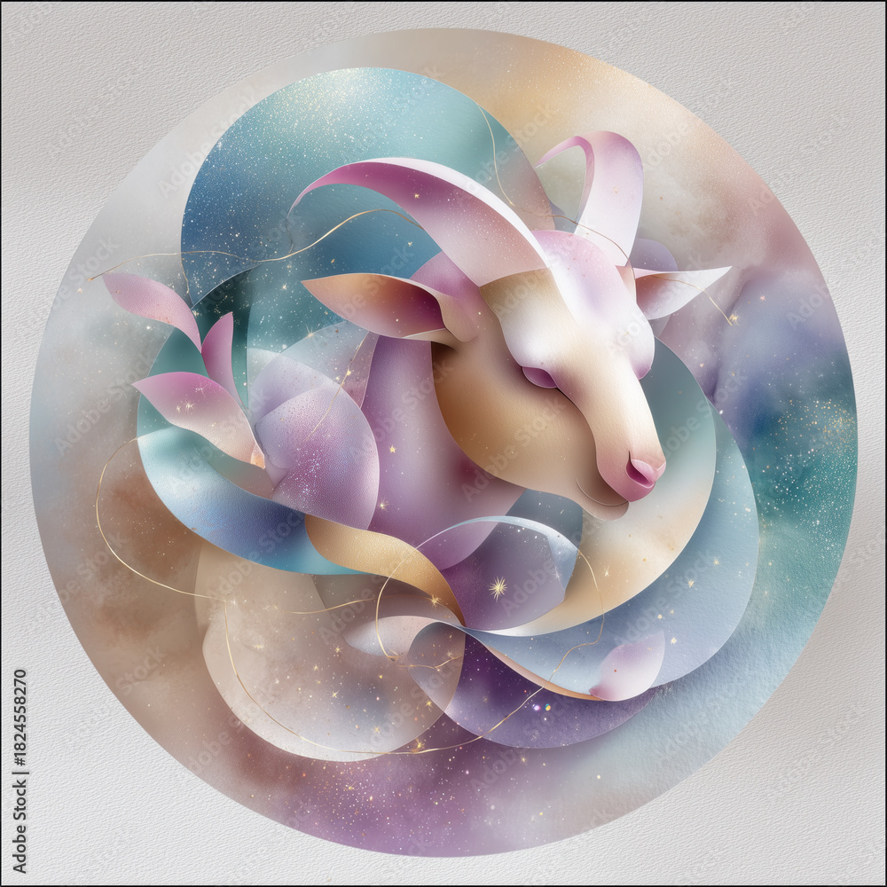 Kosmos - Sternzeichen Steinbock – künstlerische Illustrationen in pastelligen Farben und modernem... #1824558270
