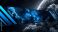 Kosmos - Panoramische Science Fiction Wand mit kosmischen Wolken und blauer Energie #1871978756