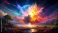 • Cosmic explosion landscape painting vibrant colors dramatic celestial scene
