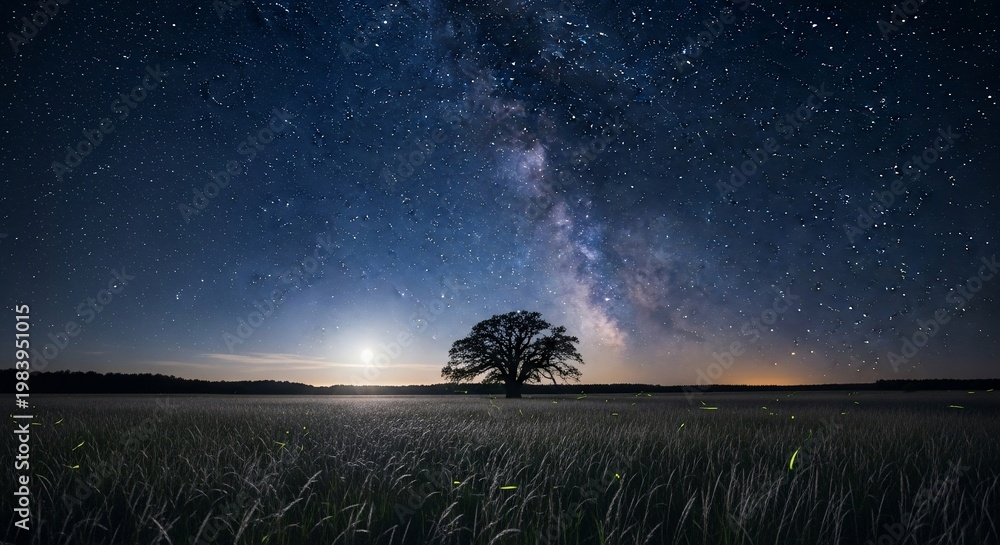 Kosmos - Night sky tree silhouette #1983951015