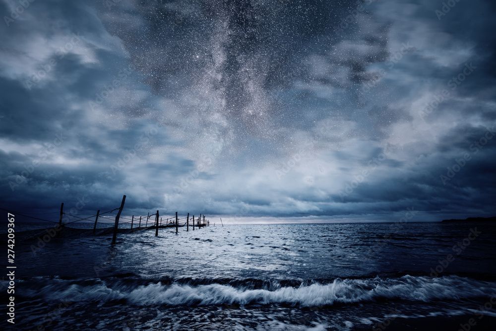 Kosmos - Sternenhimmel mit Wolken bei Nacht über der stürmischen Ostsee #274209367