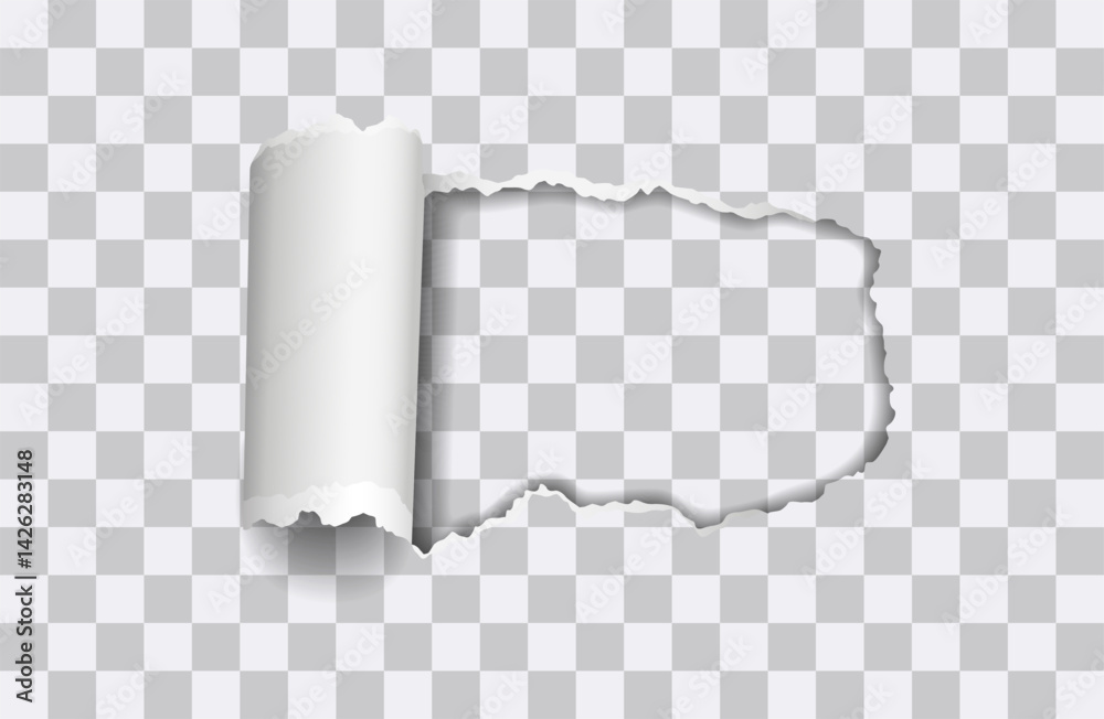 Krajobraz wiejski - Vector realistic torn paper with rollled edge on transparent background #1426283148
