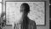 • Woman looks at whiteboard with many sticky notes. She plans strategy on colorful papers. She uses systems thinking for project management. She analyzes complex data. Her workflow is organized.