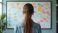 Rośliny - Woman looks at whiteboard with many sticky notes. She plans strategy on colorful papers. She uses... #1846593457