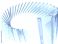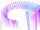 • Holographic iridescent glass circle arrow 3d background. Abstract geometric line pattern. Purple blue gradient transparent ribbon of crystal triangle plate shape row. Digital tech