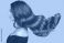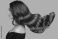 • woman shiny long wavy hair up. side view. grey background