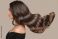 Włosy - woman shiny long wavy hair up. side view. grey background #562109435