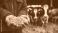Zwierzęta - Farmer holding animal feed grains in hands with dairy cows in the background, symbolizing... #1703425574