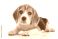 • Adorable Beagle Pup on Clean White Backdrop. Perfect Domestic Pet Portrait