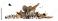 • Large group of African fauna, safari wildlife animals together, in a row, isolated