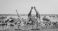 • Wild animals congregate around a waterhole in Etosha National Park, northern Namibia, Africa.