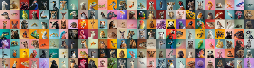 Zwierzęta - Panorama of many different wild animal studio portraits #724462442