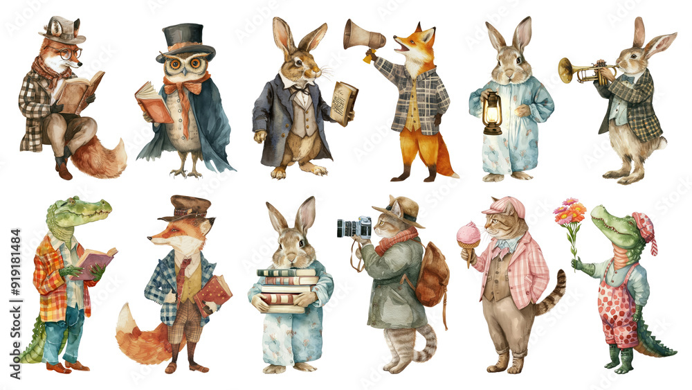 Zwierzęta - PNG vintage animal character element set, transparent background #919181484