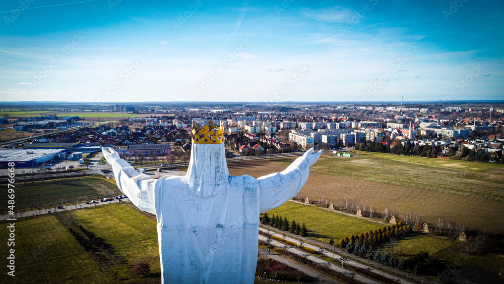 Naklejka Architektura - Jesus figure. At background Swiebodzin city in Poland. #486976668