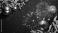 • Festive purple scene with ornaments, foliage, and exploding pyrotechnics. Christmas or New Year themed