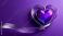 • Glossy purple heart surrounded by a silver metallic ribbon on a smooth violet background. Modern romantic 3D illustration for Valentine’s Day, love, celebration, card, or luxury design projects