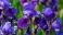• Purple iris flower blooming in spring garden. Iris blossom in spring. Iris petals in spring nature. Vibrant purple iris blooming in spring season.