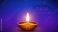 • Diya lamp with flame celebrating Ram Navami festival in vibrant purple cosmic background