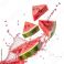 • Flying pieces of watermelon with juice splashing and drops isolated png refreshing summer fruit action png juicy watermelon pieces png transparent background image