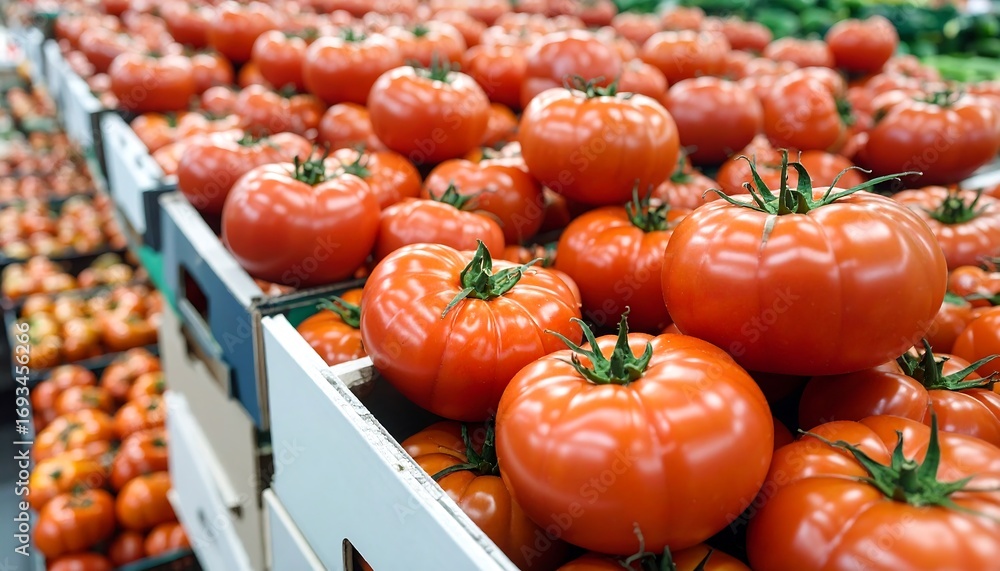 Naklejka do Kuchni - Fresh tomatoes in crates #1693456266