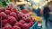 Naklejka do Kuchni - close up bunch of raspberry on tray selling at local Asian market bustling alley street #1723789028