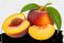 • Ripe juicy peaches with green leaves and a sliced nectarine fruit