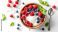 • Healthy breakfast bowl with yogurt raspberries blueberries and basil for a nutritious start to the day