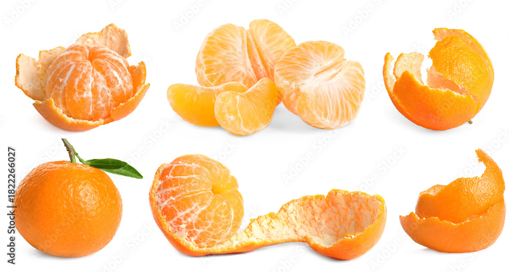 Naklejka do Kuchni - Set of tangerines isolated on white. Citrus fruit #1822266027