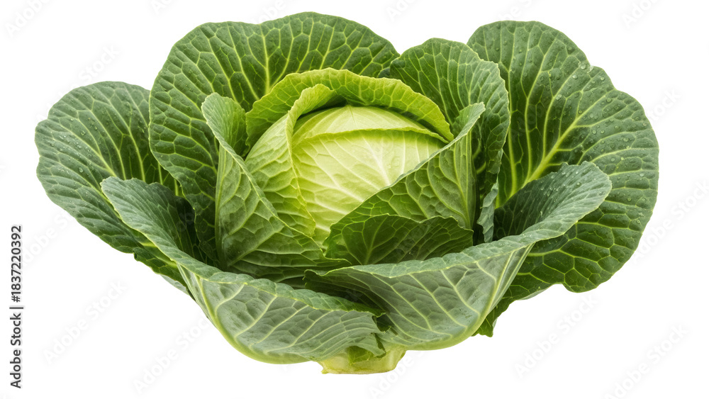 • Fresh green cabbage isolated PNG, healthy vegetable with vibrant leaves for cooking and salads on transparent background