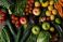 Vibrant and colorful assortment of fresh organic fruits and vegetables in rainbow colors