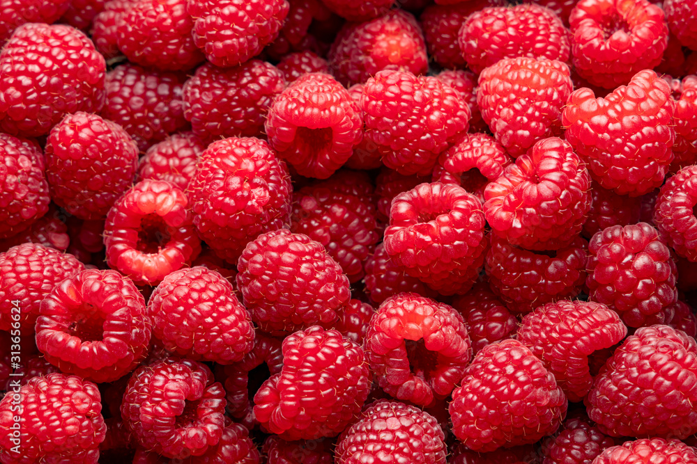 Naklejka do Kuchni - Raspberries. Fresh juicy raspberries bright background. #313656624