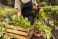 • Female farmer gathering fresh vegetables on her farm