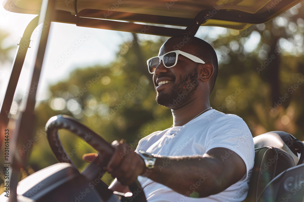 Naklejka do Pokoju Chłopca - black man in white tshirt in golf car #1031614433
