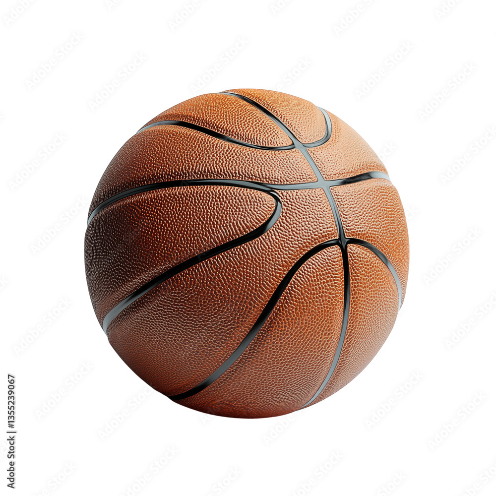 • Durable rubber basketball official size isolated on plain white background without any shadows, realistic sport ball image,