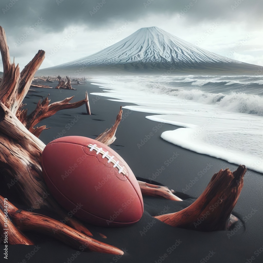 Naklejka do Pokoju Chłopca - A beach snow‑capped volcano looming #1496684779