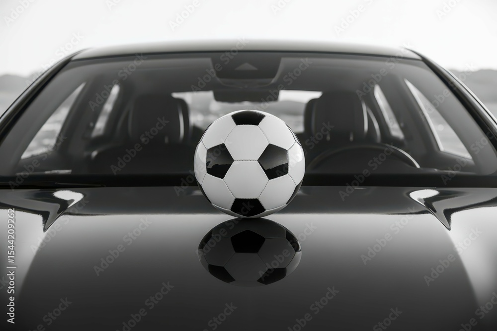 Naklejka do Pokoju Chłopca - a black and white photo of a car with a soccer ball on it, with empty blank space for text copy... #1544209262