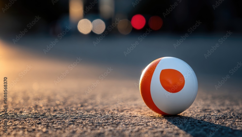 Naklejka do Pokoju Chłopca - Orange and white ball on asphalt road at dawn #1688568370