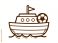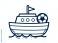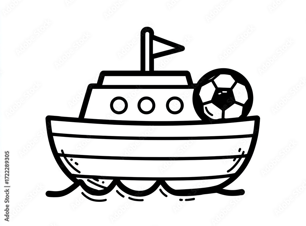 • Simple black-line drawing of a stylized boat with a soccer ball