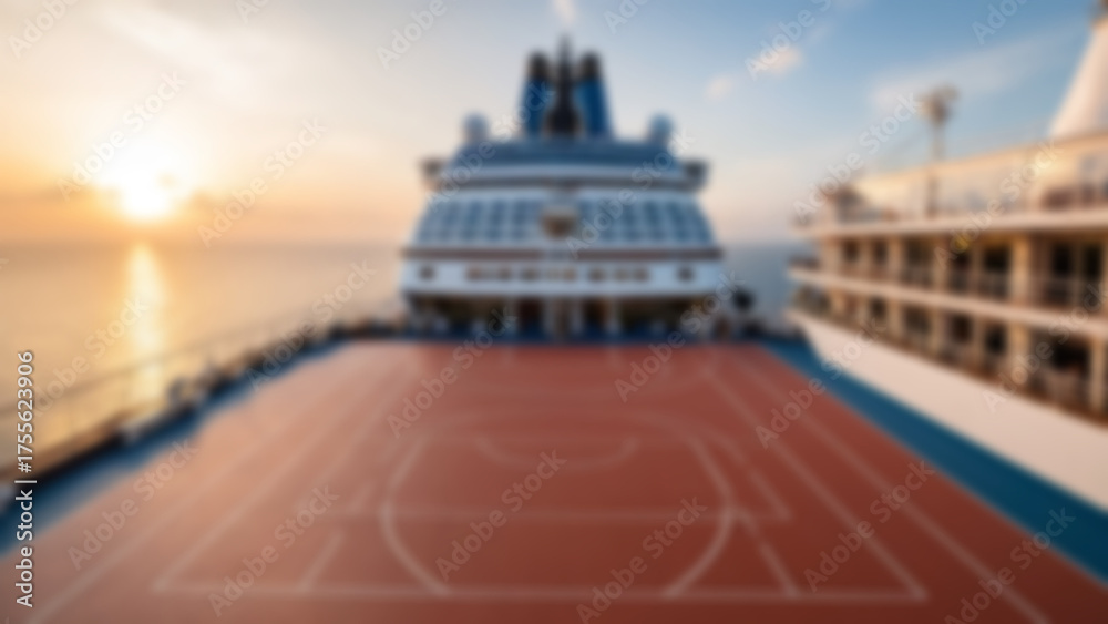 Naklejka do Pokoju Chłopca - Blurred background of the interior of a basketball court located inside a modern cruise ship with... #1755623906