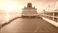 • Blurred background of the interior of a basketball court located inside a modern cruise ship with complete facilities around it, without any bright lights.