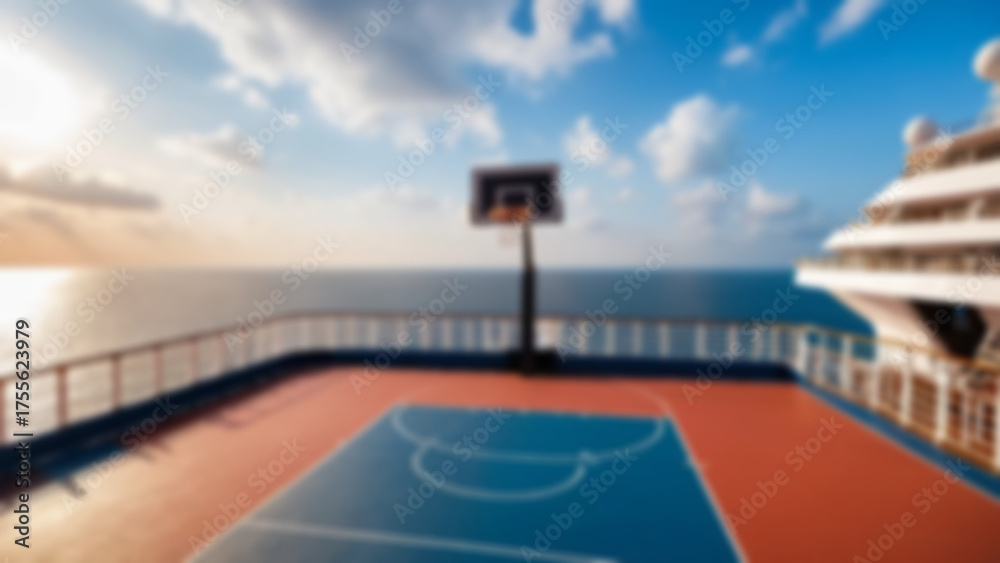 Naklejka do Pokoju Chłopca - Blurred background of the interior of a basketball court located inside a modern cruise ship with... #1755623979