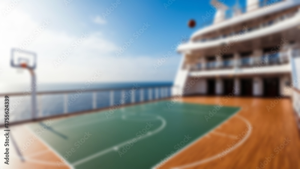 Naklejka do Pokoju Chłopca - Blurred background of the interior of a basketball court located inside a modern cruise ship with... #1755624339